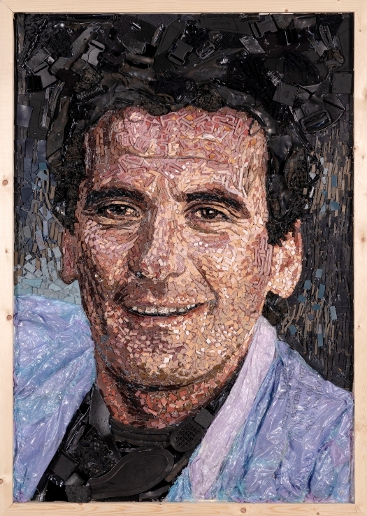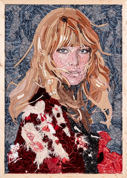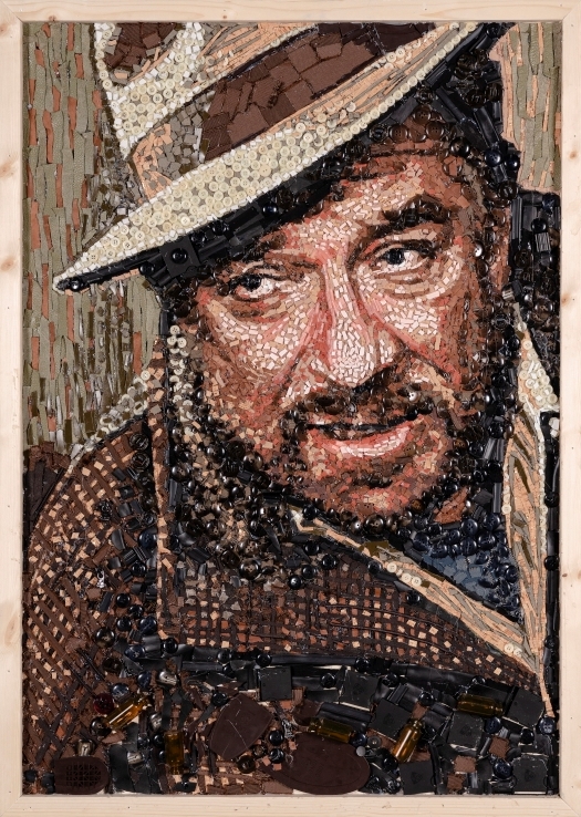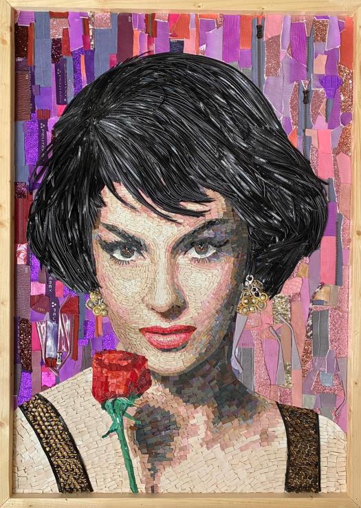 Tra queste non poteva mancare Gina Lollobrigida, la diva scomparsa il 16 gennaio 2023 e a cui la Mostra internazionale d'arte cinematografica ha dedicato tutta la serata di preapertura: la musa di De Sica che ha contribuito a fare grande il cinema tricolore proietta il suo sguardo ammaliante attraverso frammenti di brillantini, cerniere, accessori di calzature, scarti di tessuti, catene e aste di occhiali. C’è anche Sophia Loren, con il suo fascino senza tempo ricostruito attraverso pezzetti di vetro, accessori di borsettificio, tessere di mosaico, ritagli di pelle e cravatte, e Massimo Troisi che sorride vestito con scarti di tomaie, fibbie e frammenti di cellophane. Un serafico Toni Servillo, tra residui di gommapiuma, passamaneria e velluto, e un “tragico e ridicolo” Ugo Tognazzi, nei panni che gli valsero il premio per la miglior interpretazione maschile al Festival di Cannes del 1981 realizzati con bottoni, flaconi di farmaceutica e suole di cuoio. E ancora Monica Vitti, regina della commedia all’italiana, la cui sensualità è esaltata da un connubio di sfridi di tessuto e pelle, insieme a tante altre icone del cinema italiano: i loro ritratti sono stati completamente creati con rifiuti e oggetti di recupero nell’ambito di SCART, il progetto di riuso artistico della multiutility, grazie alla collaborazione con le Accademie di Belle Arti di Firenze, Bologna e Ravenna.
