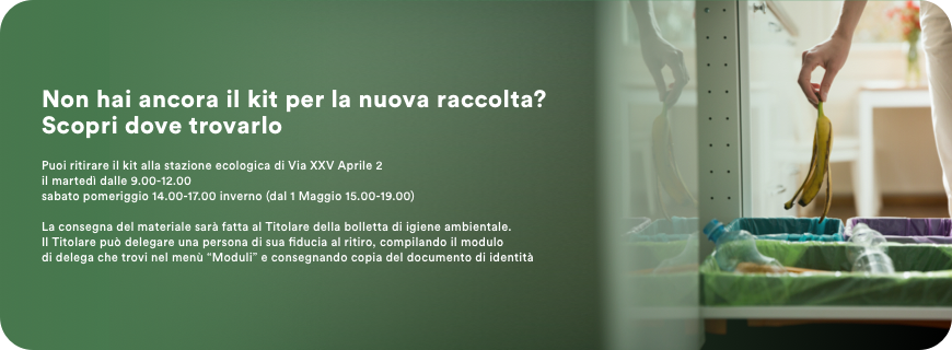 - Assieme alla lettera, verranno consegnate anche le FAQ (domande più frequenti) e un modulo di delega. Il kit per la raccolta verrà consegnato al titolare del contratto TARI oppure ad un’altra persona delegata che presenti l’apposito modulo compilato, copia del documento del delegante e documento d’identità del delegato.